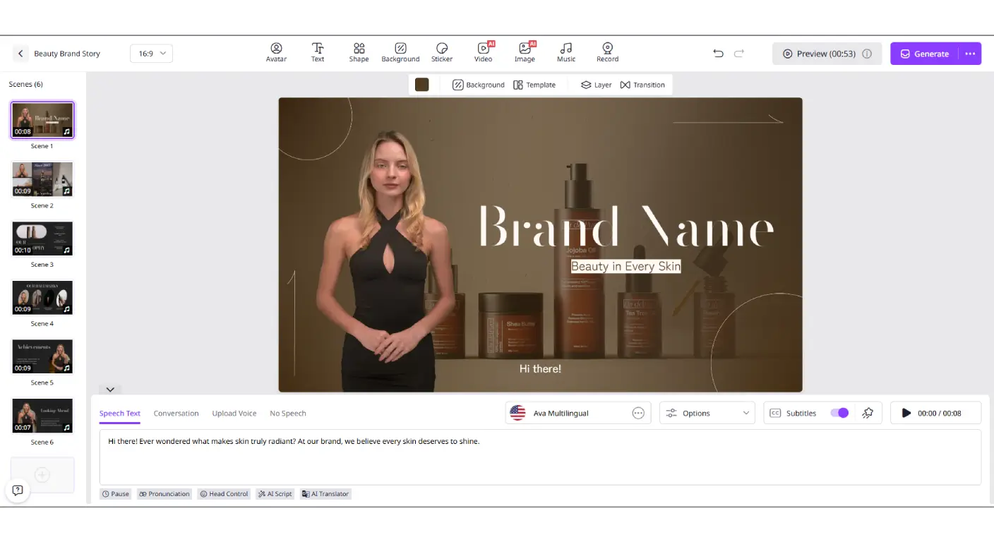 Select a template that matches the campaign goal. Choose an avatar that aligns with brand tone and audience expectations.